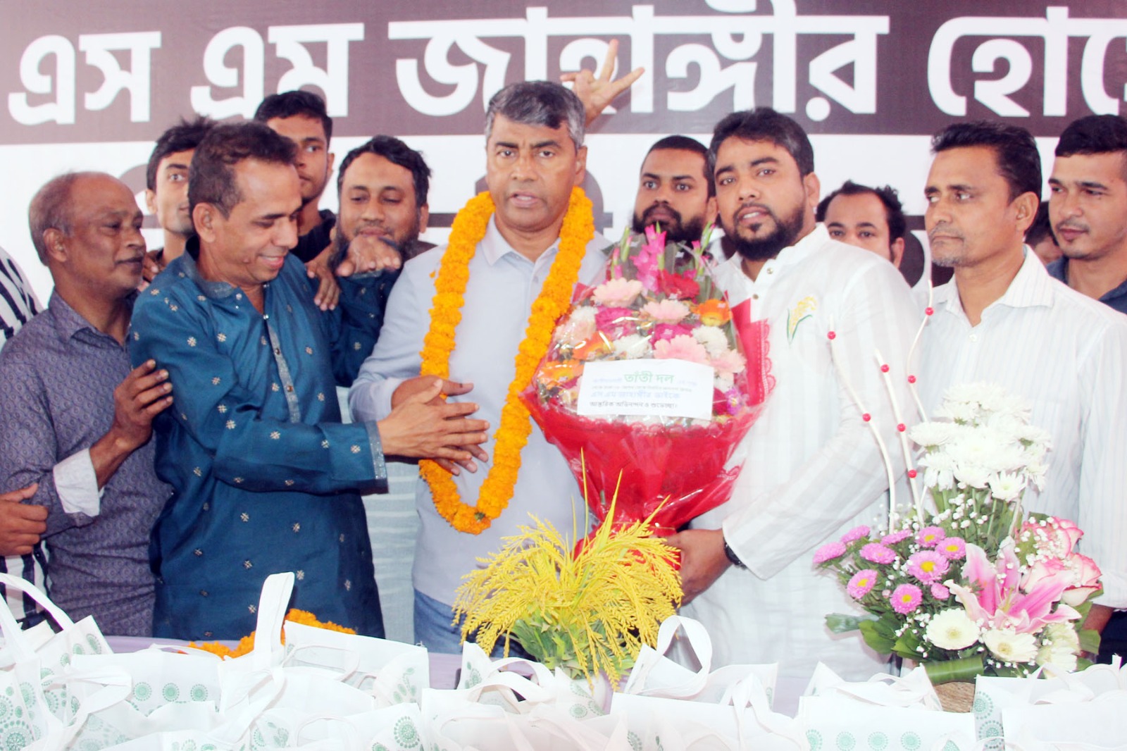তাঁতিদলের পক্ষ থেকে এস এম জাহাঙ্গীর হোসেন কে এই সংবর্ধনা দেওয়া হয়। নেতাকর্মীদের উচ্ছ্বাস ও করতালিতে মুখর হয়ে ওঠে পুরো পরিবেশ।
