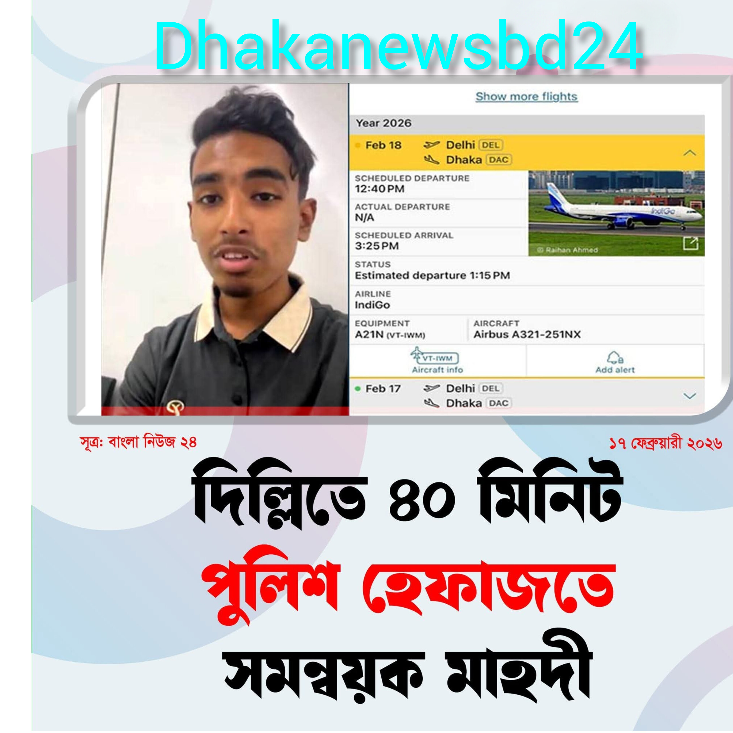 বুধবার (১৮ ফেব্রুয়ারি) দিল্লি বিমানবন্দরে প্রায় ৪০ মিনিট তাকে পুলিশ হেফাজতে রাখা হয়। এরপর ইমিগ্রেশন প্রক্রিয়া সম্পন্ন করে ঢাকাগামী ফ্লাইটে তুলে দেওয়া হয়। বিষয়টি মাহদী হাসান নিজেই নিশ্চিত করেছেন।