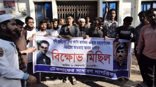 সেনাবাহিনীর অবসরপ্রাপ্ত মেজর রাশেদ মোহাম্মদ সিনহা হত্যাকাণ্ডে ফাঁসির দণ্ডপ্রাপ্ত আসামি সাবেক ওসি প্রদীপ কুমার দাসের দ্রুত ফাঁসি কার্যকর ও তার সহযোগীদের বিচারের আওতায় আনার দাবিতে বিক্ষোভ মিছিল করেছে কক্সবাজারের টেকনাফের…