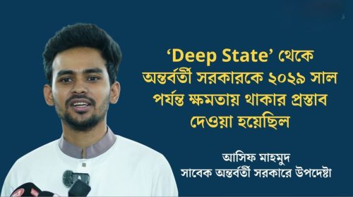 ক্ষমতায় রাখার প্রস্তাবে কী শর্ত দিয়েছিল ‘ডিপ স্টেট’, জানালেন আসিফ Dhakanewsbd24 প্রকাশ : ২৭ মার্চ ২০২৬, এনসিপির কেন্দ্রীয় কার্যালয়ে স্বাধীনতা দিবস উপলক্ষে আলোচনা সভায় জাতীয় নাগরিক পার্টির মুখপাত্র আসিফ মাহমুদ…